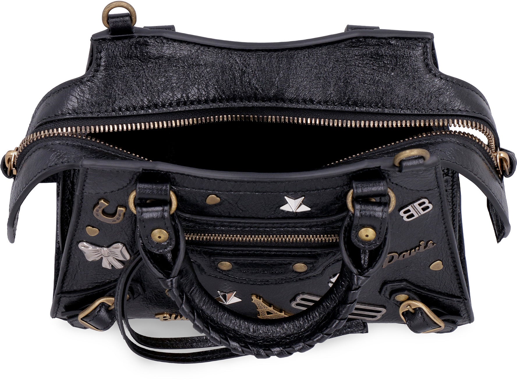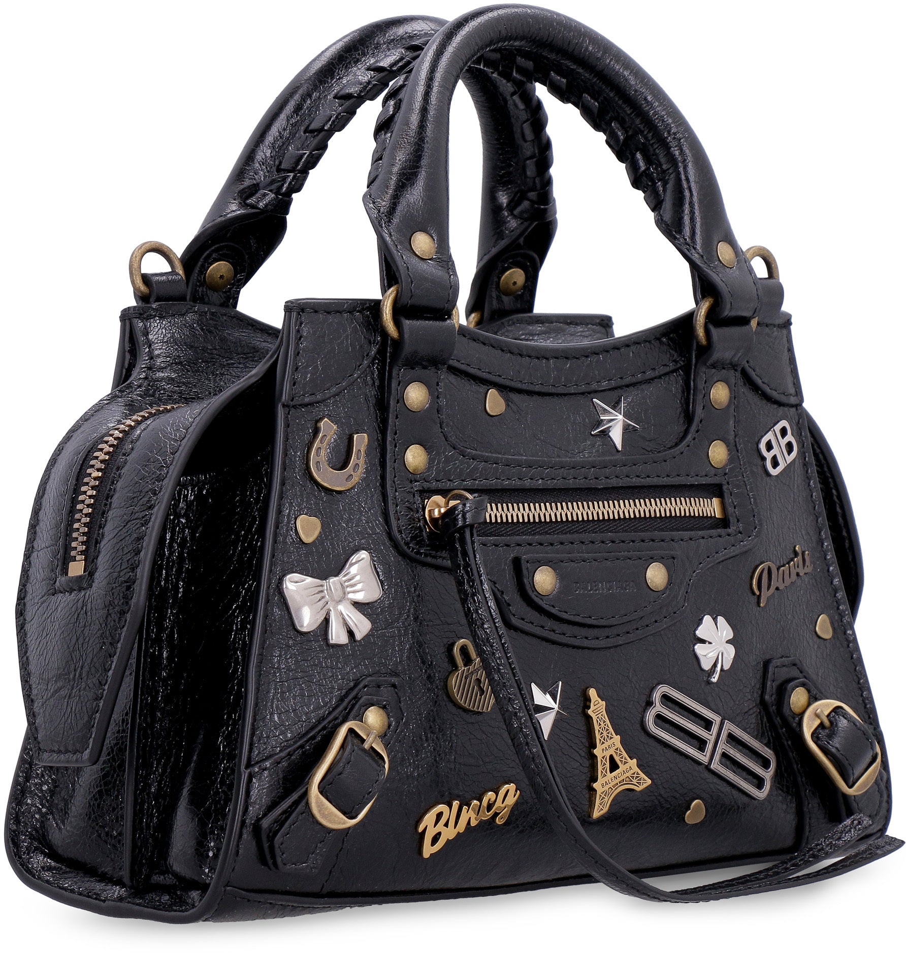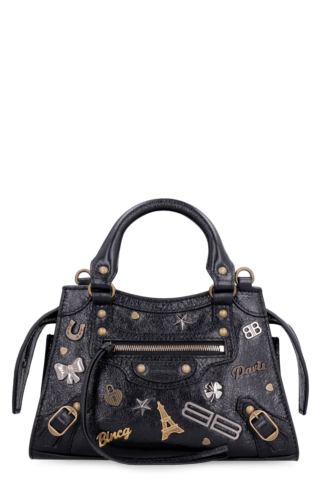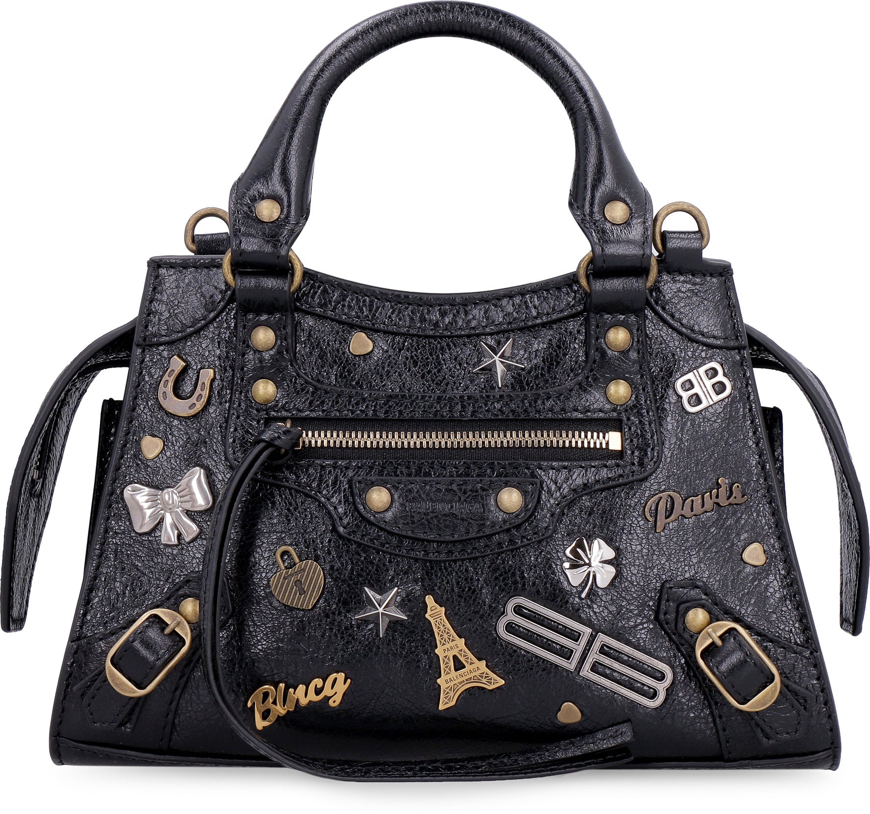 Decorative front metal studs and buckles